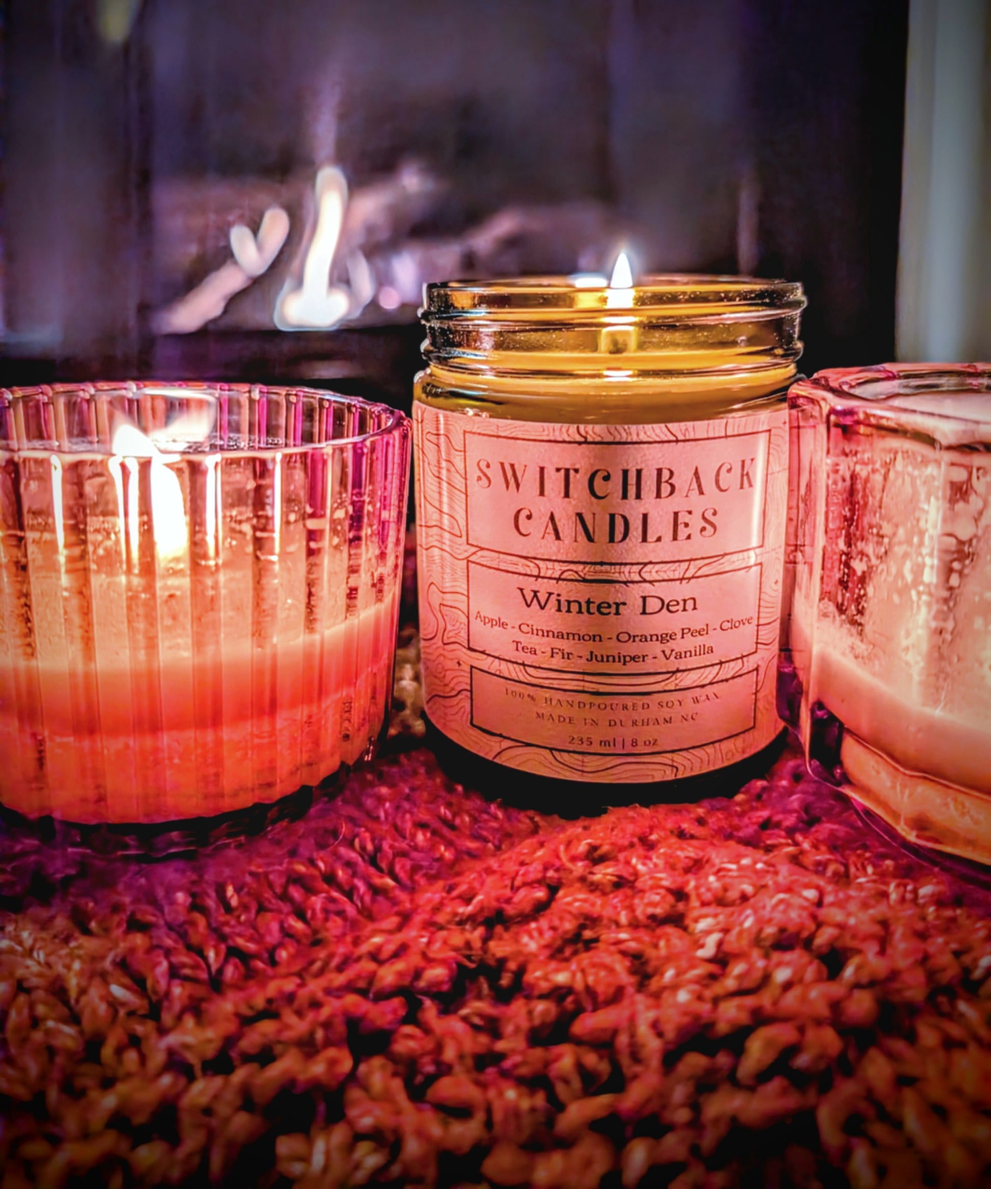 Winter Den is cinnamon forward with notes of pine and apple, with a hint of cream to soften the sharp notes. It's very warm and comforting and an ode to cozy evenings in on cold winter nights.